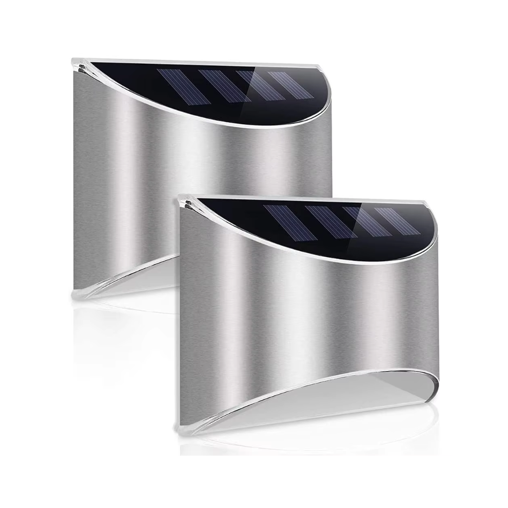 UAUWBRZ 2Pcs Stainless Steel Solar LED Wall Lamps Outdoor Energy-Saving Garden Fence Lights Automatic Dawn Decorative Wall Lighting for Patio Porch