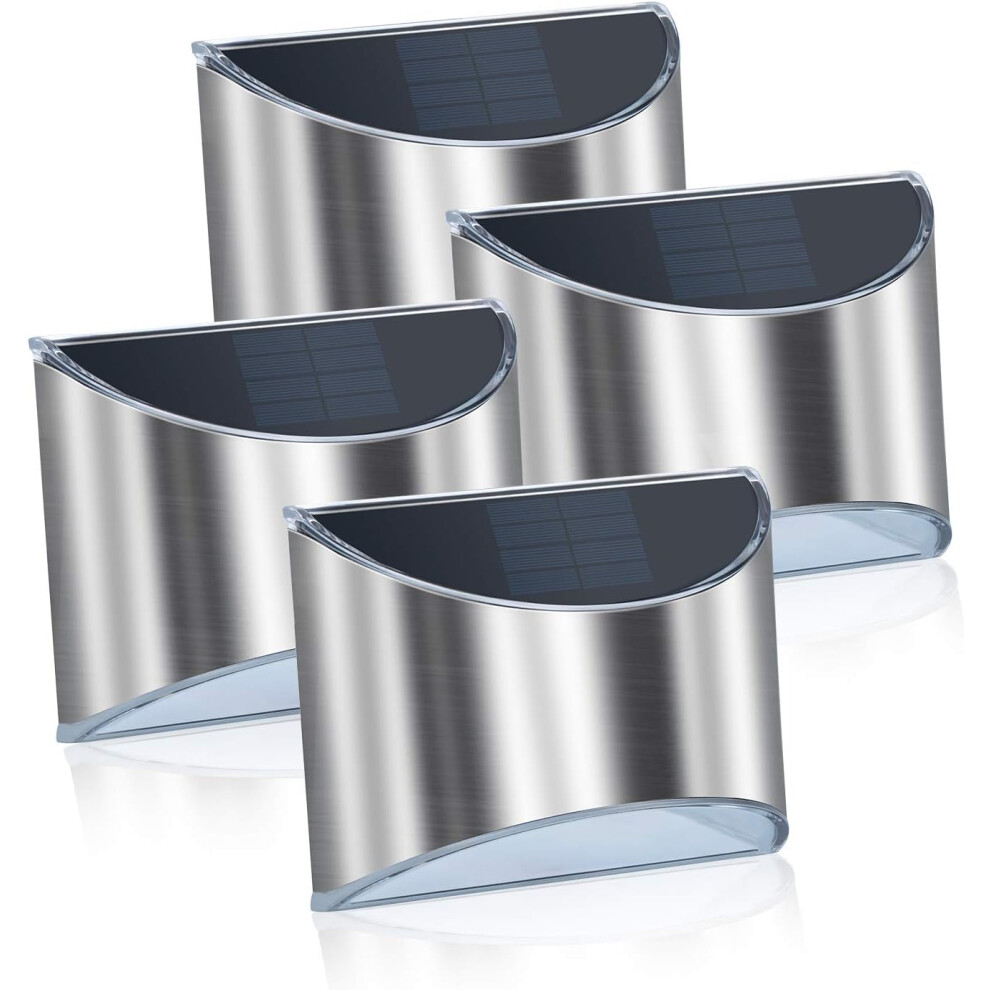 Sizi Solar Powered LED Garden Fence Lights Wall Door Decking Outdoor Lighting (4 x Solar Fence Lights) (Silver) (S-GBL)
