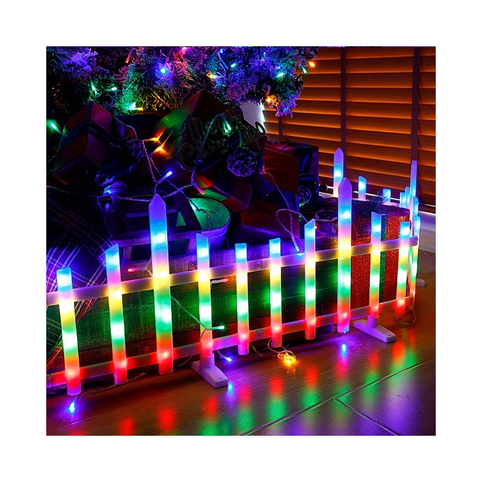 (Four Color, 2.8m(110.24in)) Solar-Powered Plastic Garden Fence Lights, Semi-Flush Mount In-Ground Outdoor Landscape