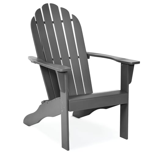 RELAX4LIFE Outdoor Adirondack Chair, All-weather Acacia Wood Patio Lounge Armchair with High Backrest & Wide Armrest, Garden Fire Pit Chair Reclining Deck Seat for Lawn Balcony (Grey)