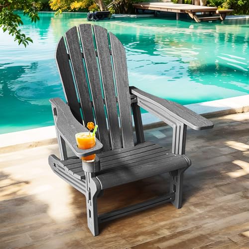Aoodor HDPE Outdoor All-Weather Folding Adirondack Chair for Patio, Garden, Backyard, Lawn, Fire Pit, Grey