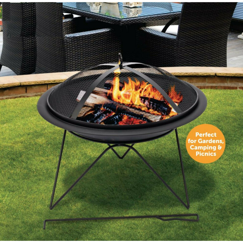 60cm Garden Fire Pit Bowl with Barbecue Grill and Mesh Lid