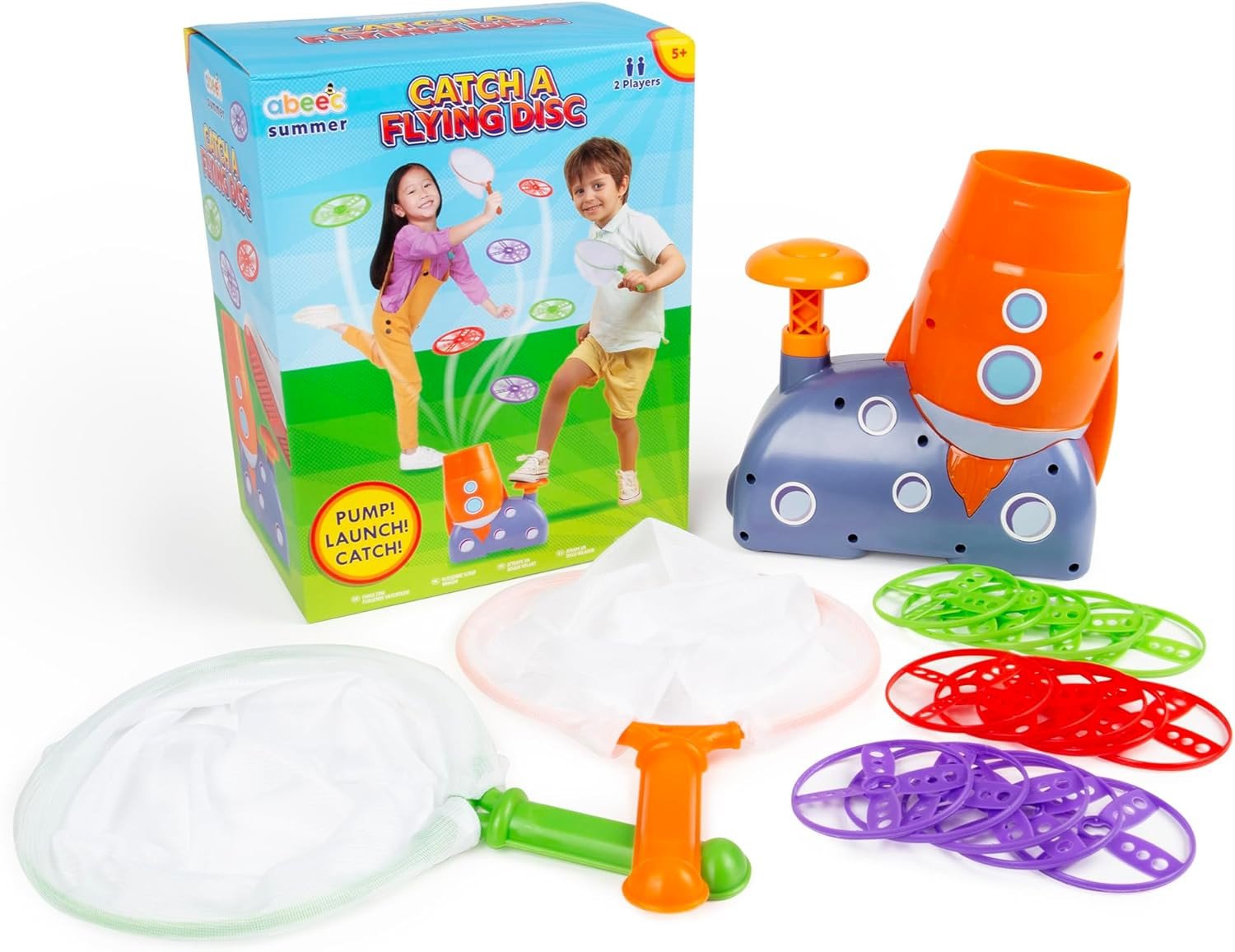 abeec Flying Disc Launcher Toy, Garden Games for Kids With x6 Flying Discs & x2 Nets, Outdoor Rocket Launcher for Kids, Flying Toys for Summer Fun, For Boys & Girls