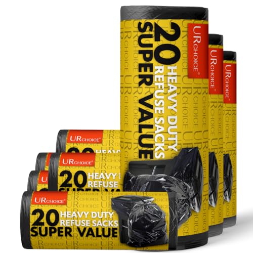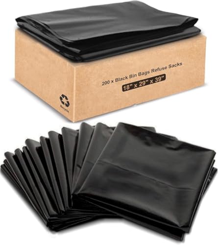 200 Bin Bags 80L (18"x29"x39") Black Bags Extra Strong Bin Bags Black Bin Liners Refuse Sacks for Home Garden Kitchen House Office Caterers Restaurant–Rubbish Garbage Bags