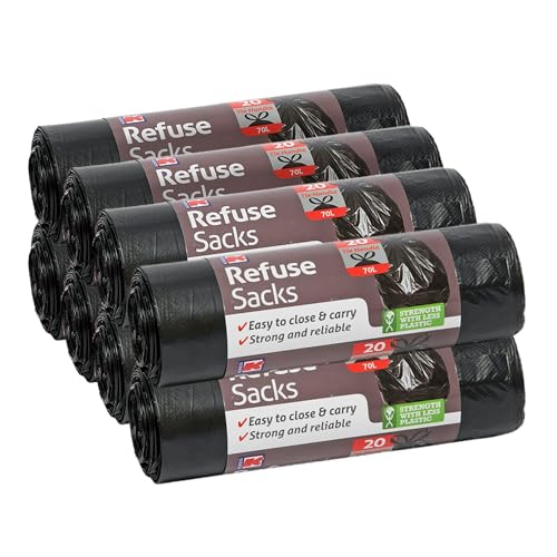70L Heavy Duty Bin Bags & Liners, Pack of 10 Rolls, Strong & Secure Flat Top 200 Bag Refuse Sacks, Tear Resistant, Recycled Garbage Bags for Home, Office, Kitchen, Garden & Commercial Use