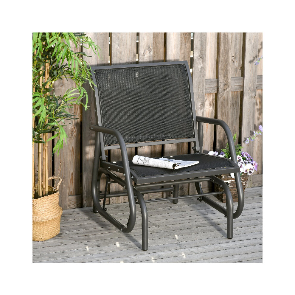 Outsunny Outdoor Garden Glider Chair, Metal Frame Single Armchair Swing Seater w/Breath Mesh Fabric Seat, Curved Backrest, Armrests, for Living Room, Patio, Porch, Dark Grey
