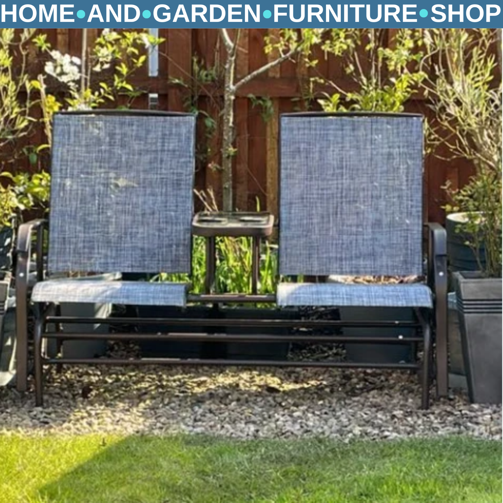 Garden Double Glider Rocking Chairs Love Seat Middle Table Outdoor Patio Set