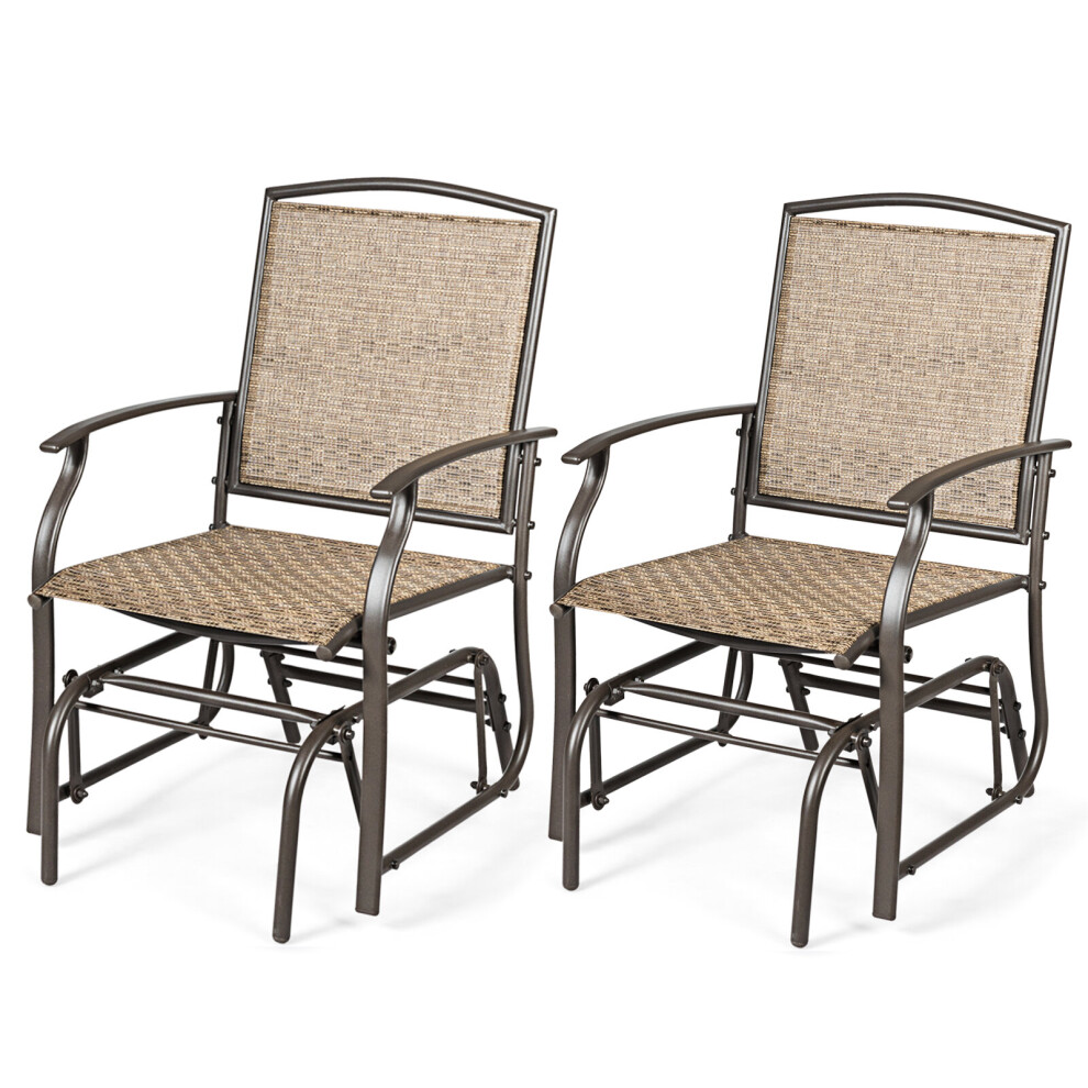 COSTWAY Garden Glider Chair, Metal Frame Armchair Swing Single Seater, Outdoor Indoor Relax Rocking Chairs for Living Room, Patio, Porch and Poolside (Brown)