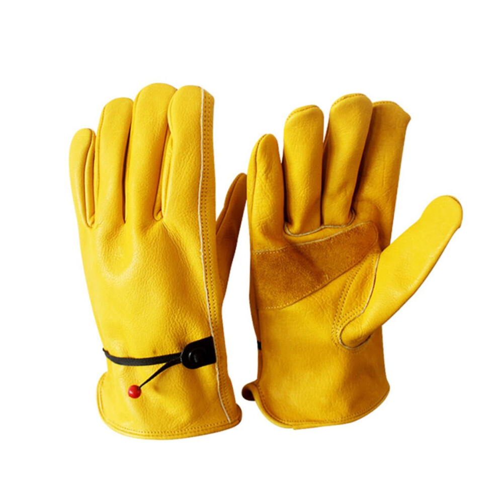 Leather Garden Gloves for Men Lightweight Cowhide Work Gloves for Riding Climbing Yard Tasks Yellow