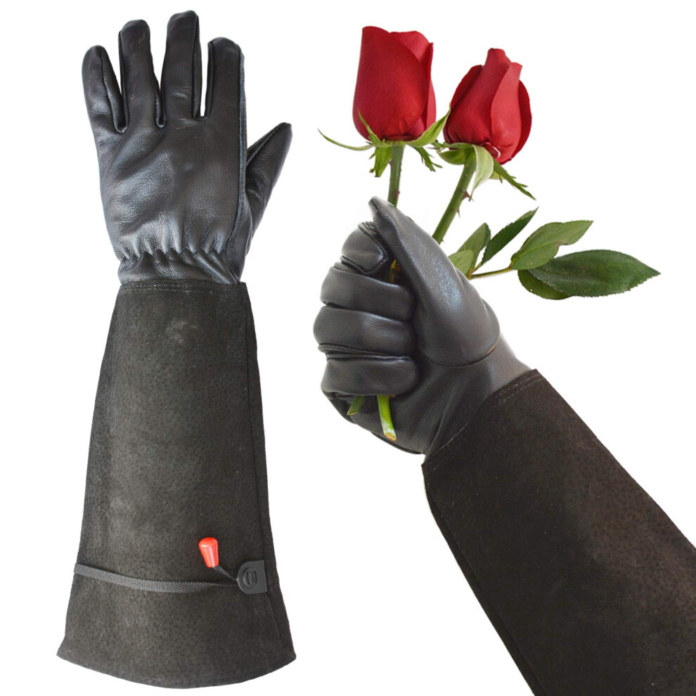 Garden Gloves, Leather Material for Men and Women, Breathable Cowhide Leather Extra-Long Gardening Gloves with Adjustable Cuff, Thorn-Proof and Punctu