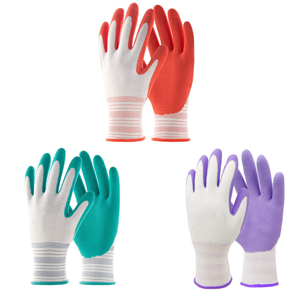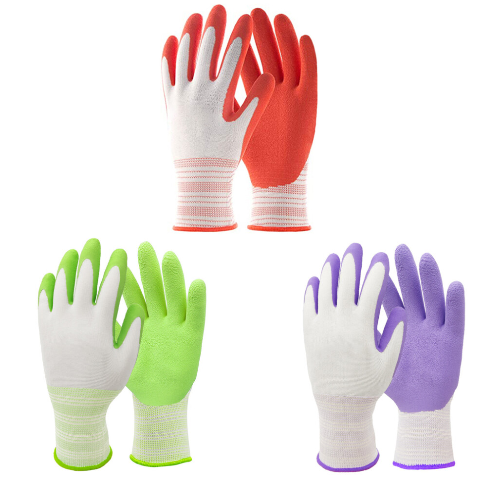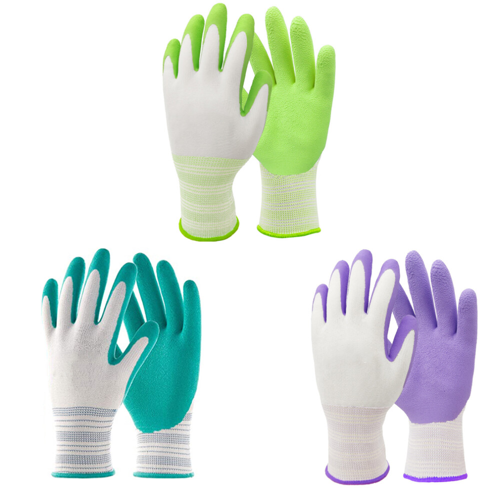 COOLJOB Breathable Gardening Gloves for Young Ladies, Women, Men and Elderly, 3 Pairs Stretch Recycled Polyester Garden Work Gloves with Grip, Non-slip Rubber Coated, Think Green, Small Adult
