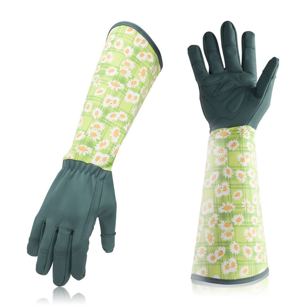 Garden Print Pruning Gloves for Men/Women, Anti-Thorn Gardening Gloves for Planting Flowers-Green