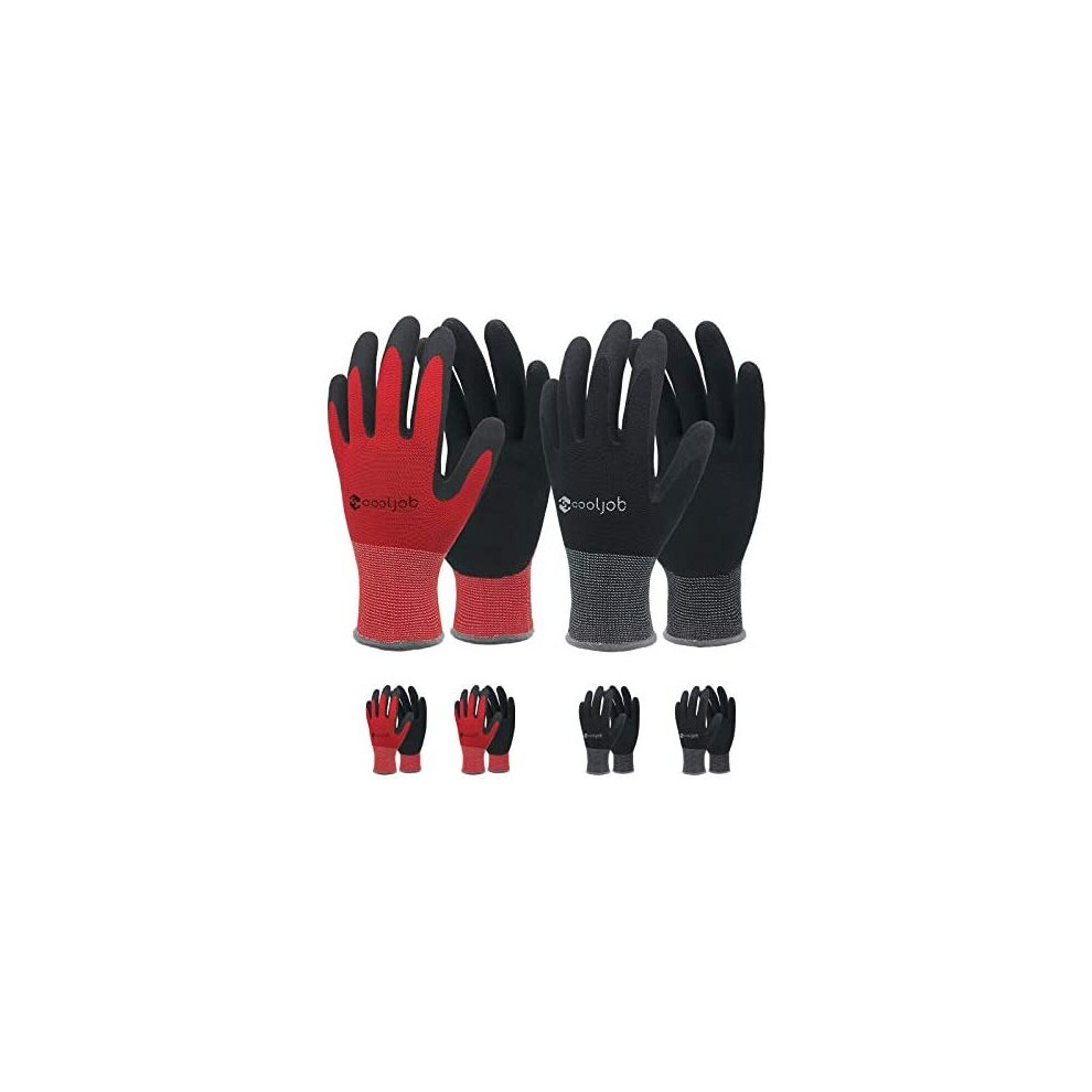 COOLJOB Gardening Gloves for Men, 6 Pairs Work Gloves Men, Durable Garden,Rubber Coated Safety Working for Power Grip, Men’s Large Size Fits Most, Black & Red (Half Dozen L)