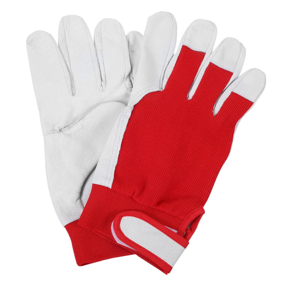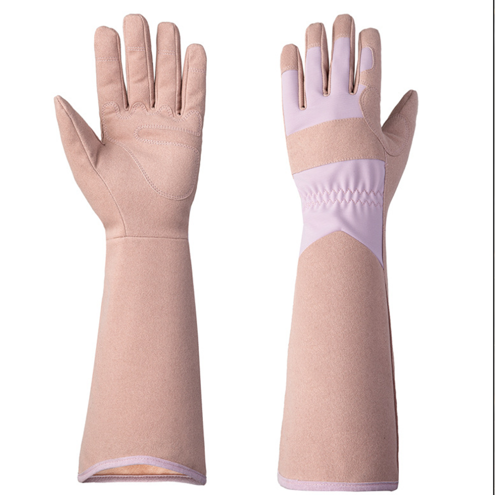 Garden Gloves for Men and Women, Leather Material with Adjustable Cuff, Breathable Long Gardening Gloves, Thorn-Proof and Puncture-Resistant Design, V