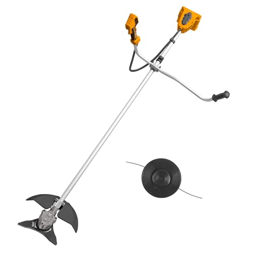 Gonpmny Strimmer, Cordless Strimmer with 2 Battery and UK Charger, Garden Strimmer with Blades, Grass Ttrimmer, Brush Cutter, Length Adjustable, Suitable for Home Gardens and Lawns
