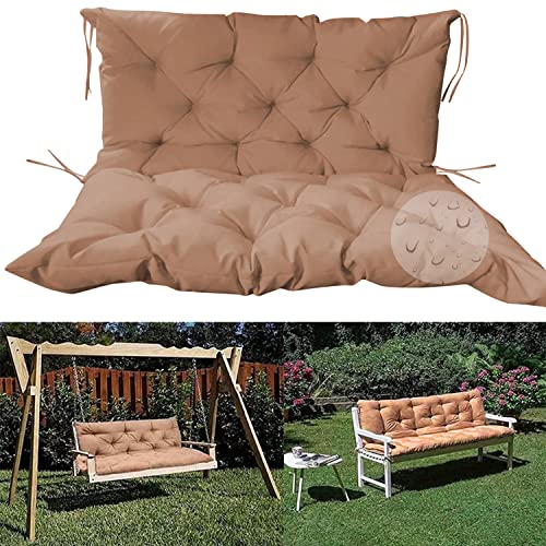 NENIUX Waterproof Wooden Bench Cushions with Backrest, Bench Pads 2-3 Seater with Anti-skid Ties for Garden Swing Hammock Sun Chair Patio Furniture Outdoor/Indoor,120 * 100 * 10cm,Khaki
