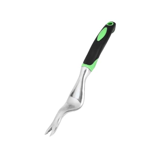Two-Pronged Fork Hand Weeder Tool Sturdy with Ergonomic Handle Garden Weeding Fork Multi-purpose Durable Puller(Green)