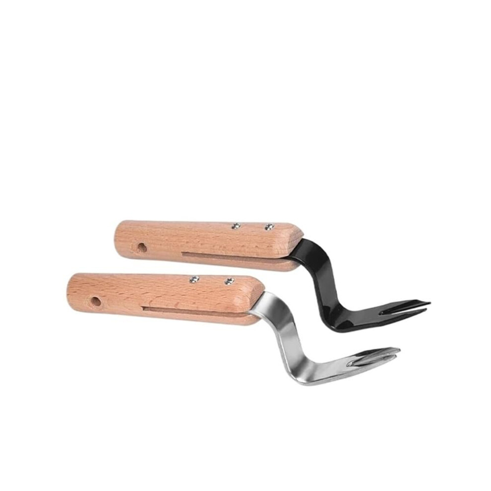 Manual Weeder Tool with Wooden Handle, Durable Garden Hand Weeding Fork for Transplanting