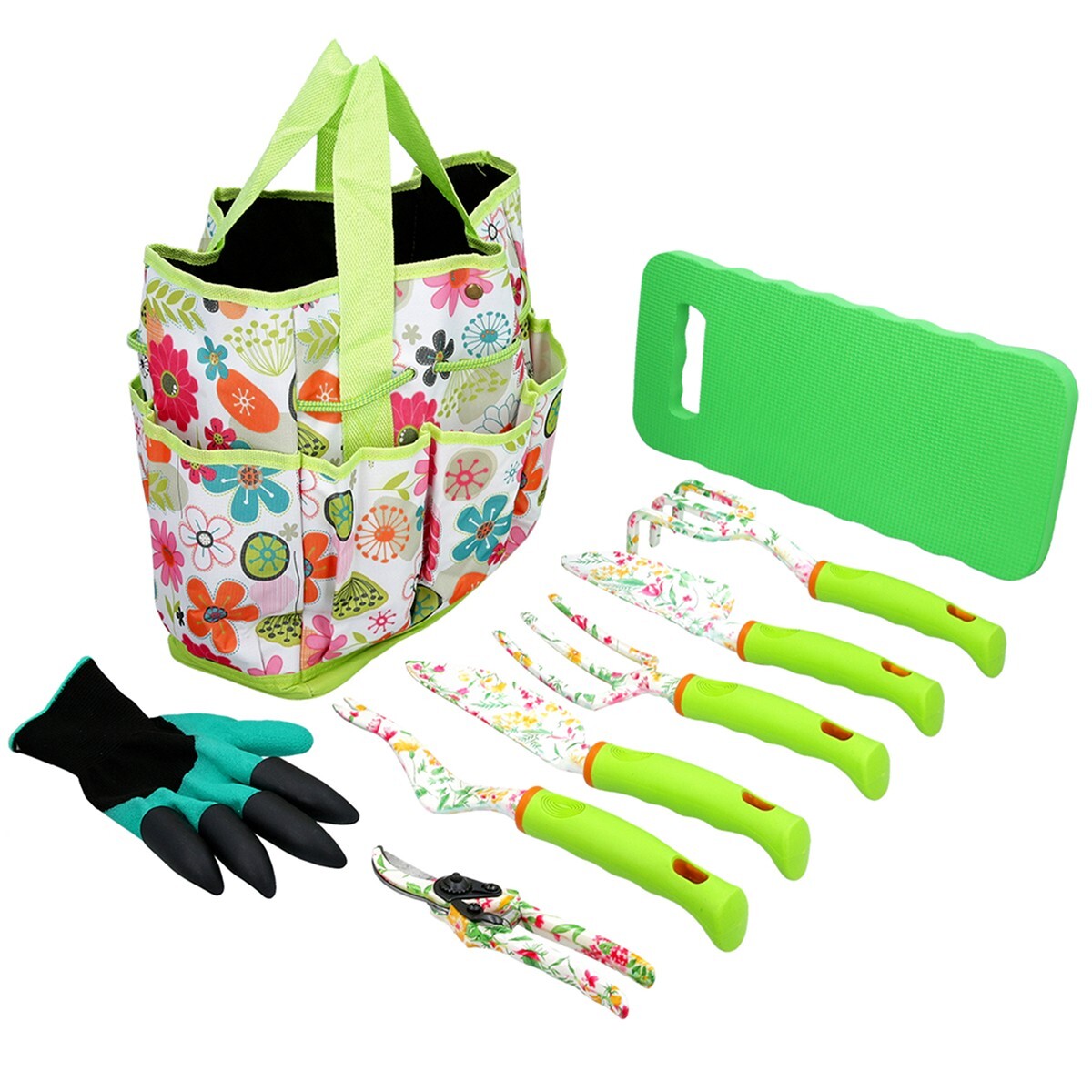 Garden Hand Tool Set with Tote Bag Trowel Fork Weeder Gloves Gift