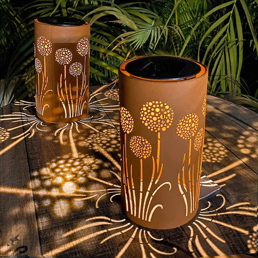 ISTOVO 2X Solar Lantern Lights Outdoor Vintage Metal Hanging Lanterns with Handle for Garden Accessories Porch Decorations