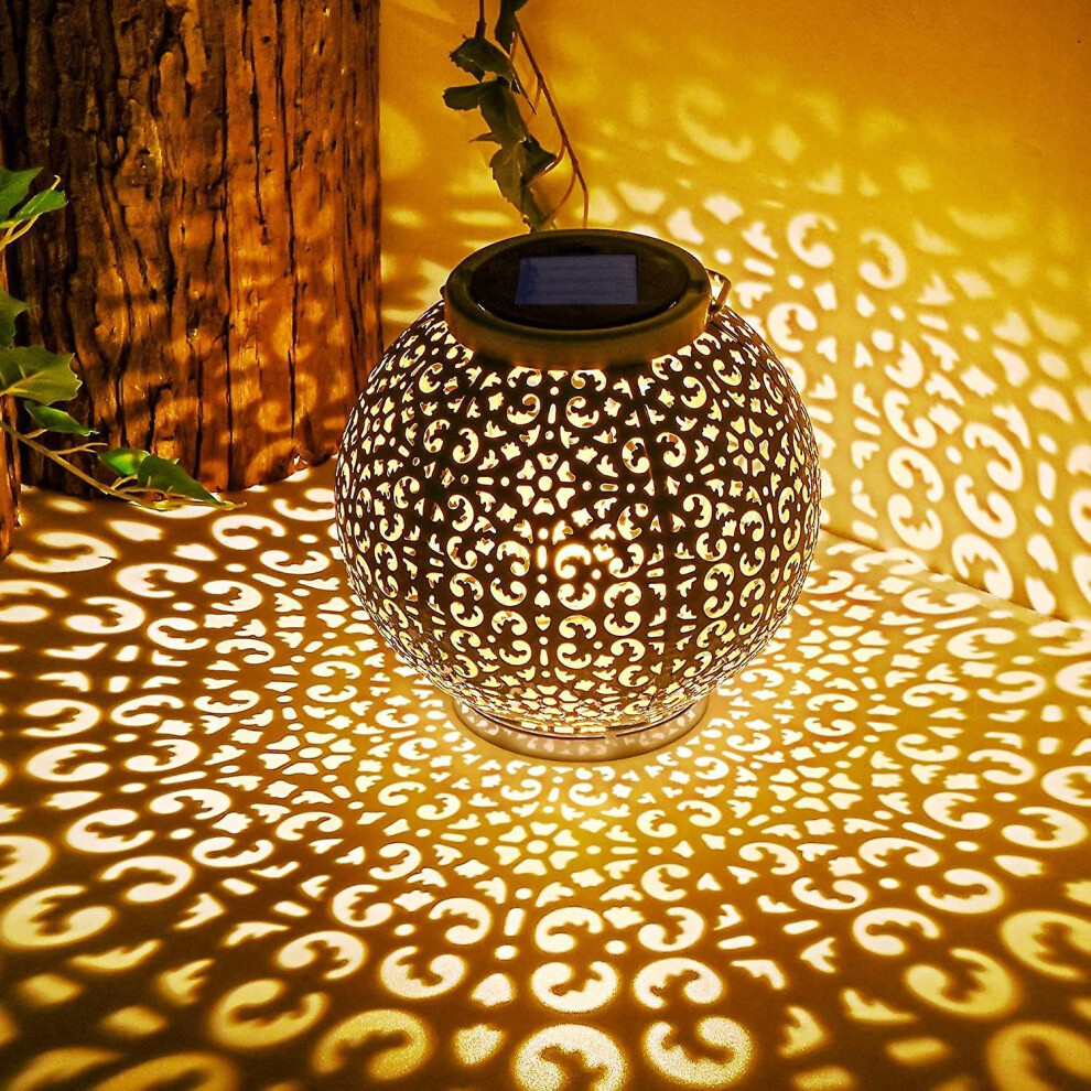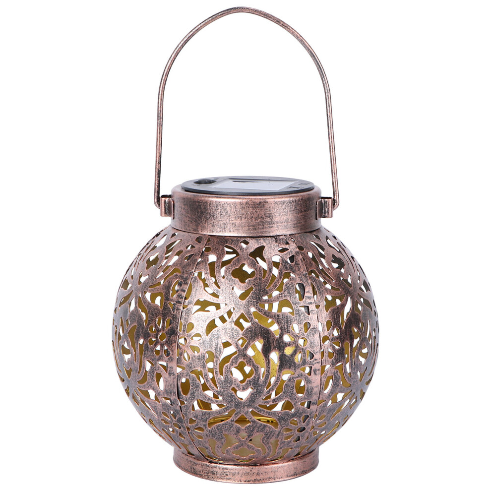 Retro Solar Lanterns For Garden, Vintage Hanging Solar Lights Metal Outdoor Decor With Unique Hollow Carving Design, Auto Working Polysilicon Panel So