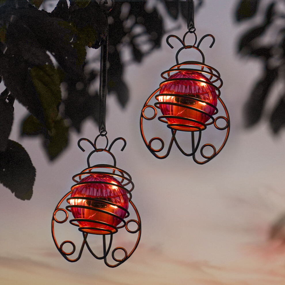 2 Pack 11.5cm Solar Power Outdoor Hanging Ladybird Lights | Garden Party