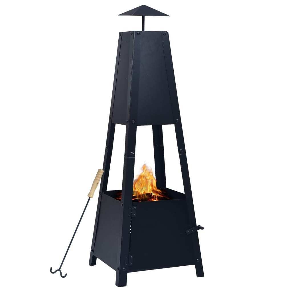 Fire Pit Black Steel Outdoor Garden Fireplaces Tower Patio Heaters vidaXL