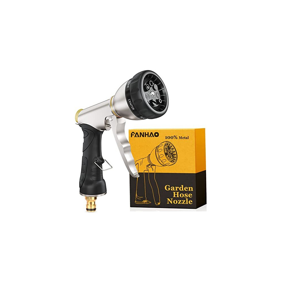 FANHAO Hose Pipe Spray Gun, 100% Heavy Duty Metal Garden Hose Spray Gun with 7 Spray Patterns, High Pressure Hose Nozzle with Ergonomic Handle for Watering Plants & Lawns, Washing Cars & Pets