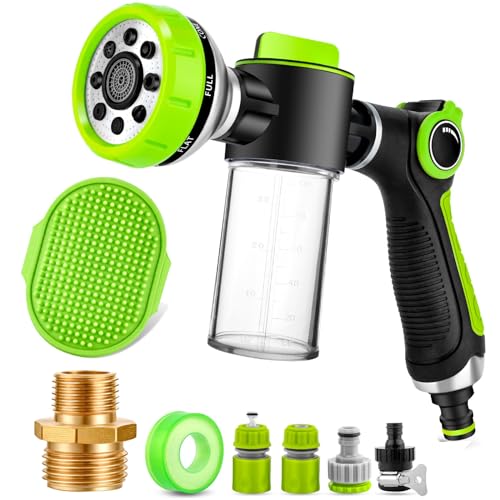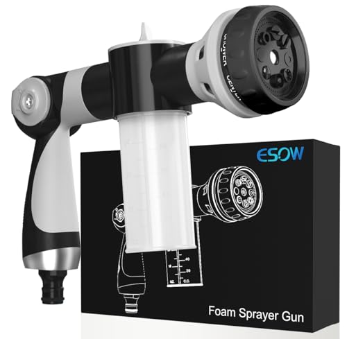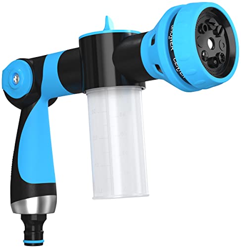 ESOW Garden Hose Nozzle, Adjustable Foam Spray Gun 8 Way Spray Pattern with 3.5oz/100cc Soap Dispenser Bottle, Garden Hose Foam Sprayer for Car Wash, Watering Plants, Showering Pet, Cleaning