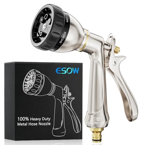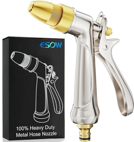 ESOW Garden Hose Nozzle, 100% Heavy Duty Metal Spray Gun with Full Brass Nozzle, 4 Watering Patterns Watering Nozzle- High Pressure Rear Trigger Design for Watering Plants, Car Wash and Showering Dog