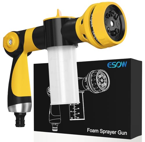 ESOW Garden Hose Nozzle, High Pressure Foam Sprayer Gun 8 Way Spray Pattern with 3.5oz/100cc Soap Dispenser Bottle, Snow Foam Gun for Car Wash, Watering Plants, Lawn, Patio, Yellow