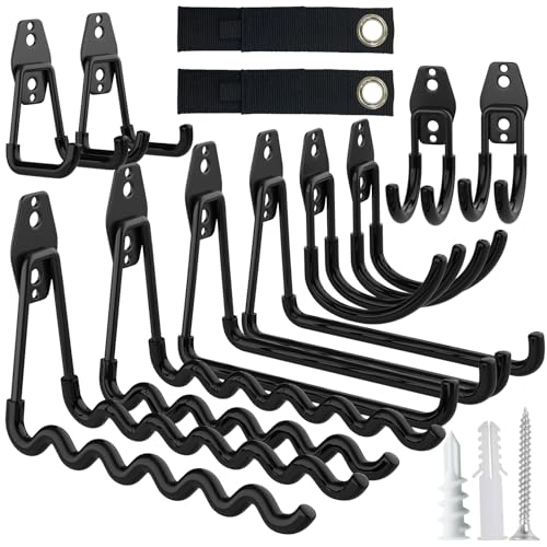 HSTMYFS 10 Pack Heavy Duty Garage Hooks with 2 Extension Cord Holder, Utility Steel Storage Hooks, Wall Mount Hooks & Tool Organiser Hanger, Hanging for Bike, Garden & Shed Tools, Ladder, Hose