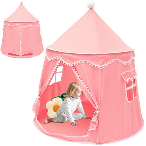 JOYIN Pink Princess Castle Play Tent,Girls Play Tent- Kids Pop-Up Tent - Childrens Indoor or Outdoor Garden Playhouse,Girls Tents Wendy House