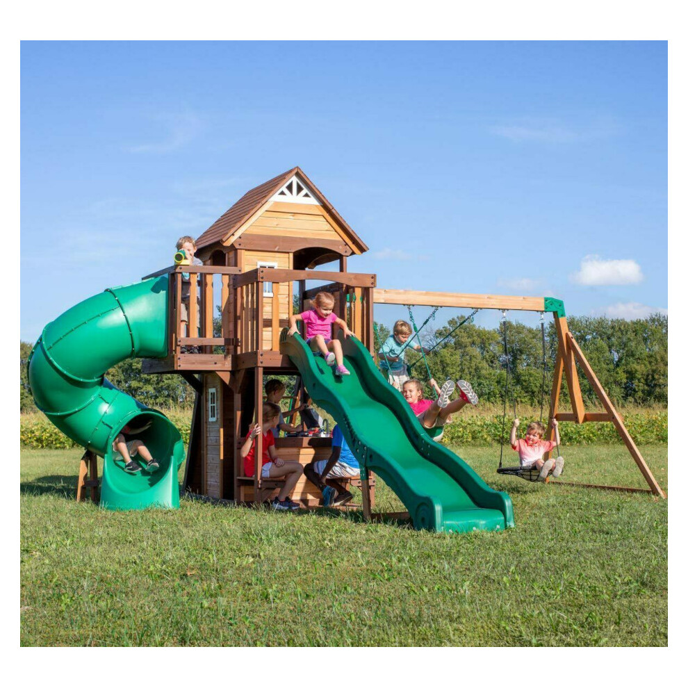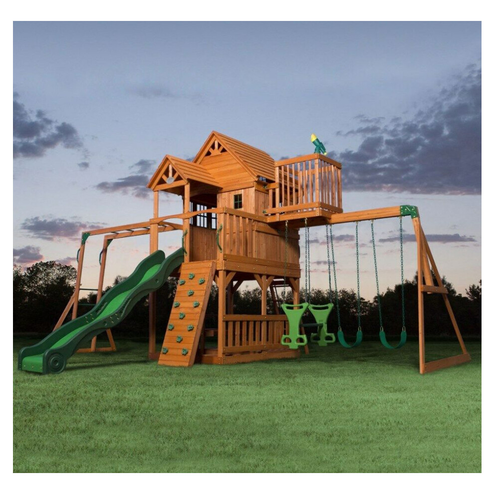 Redwood Lodge Childrens Wooden Playhouse, Painted Garden Crooked Wendy House, Thicker Fir Wood 5 x 4