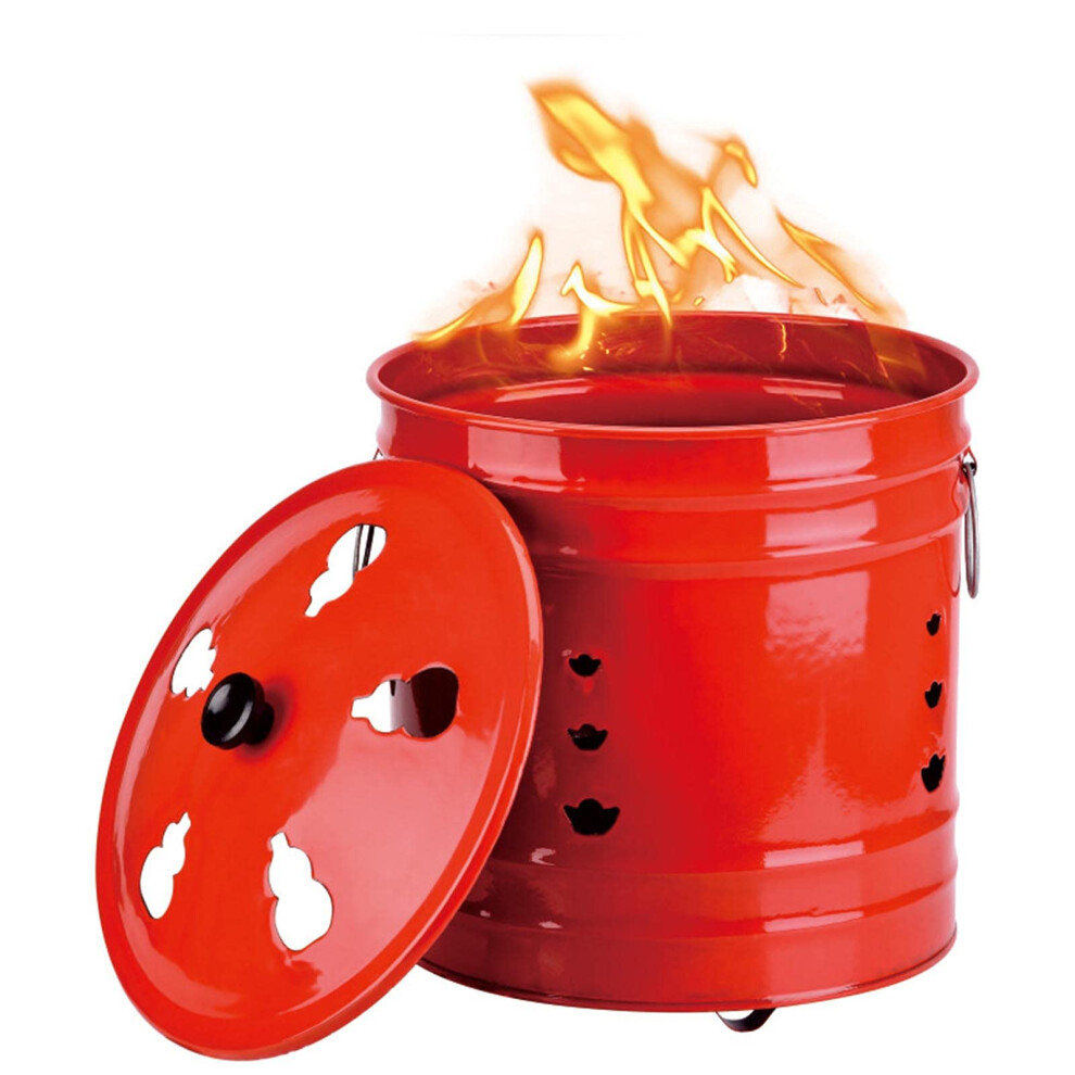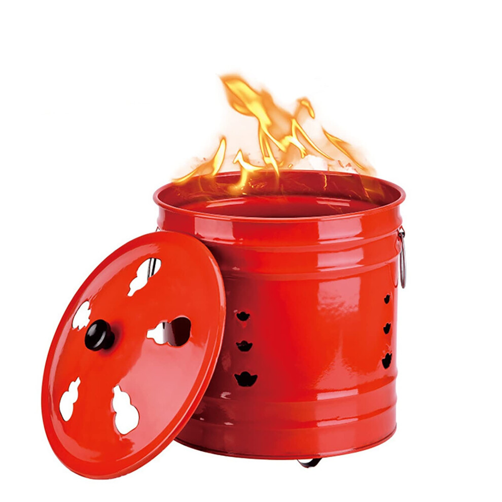 Stainless Steel Burn Barrel Outdoor Incinerator Garden Burn Cage 38 Cm Red