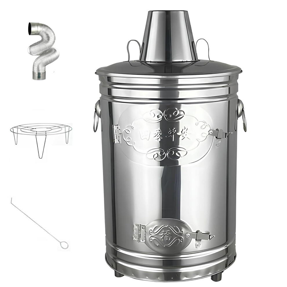 XXL Garbage Incineration Container, Stainless Steel Burning Barrel for Garden, Metal Incinerator with Lid and Fire Hook