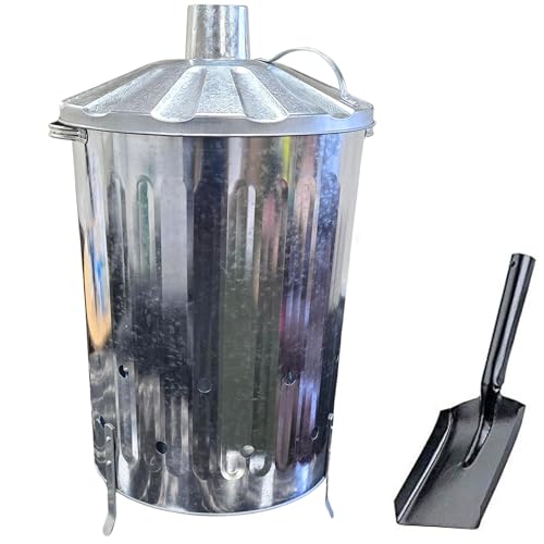 Srendi® Small Medium Large 15L 60L 90L Litre Metal Galvanised Garden Incinerator Fire Bin Burning Leaves Paper Wood Rubbish Dustbin Shovel and Poker Made in U. K. (60L INC Only)