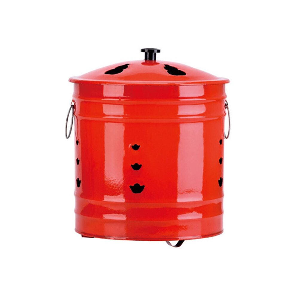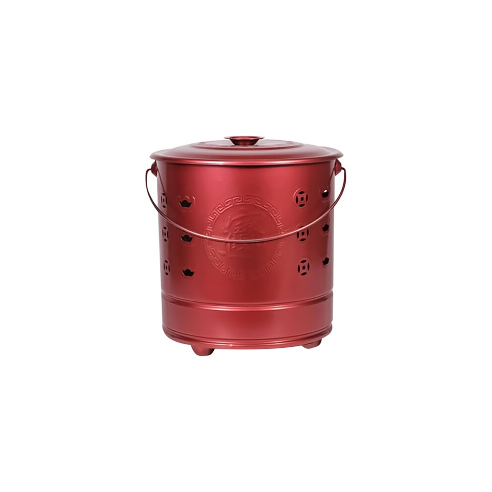 Red Stainless Steel Garden Incinerator Bin with Lid and Tongs for Efficient Outdoor Waste Burning