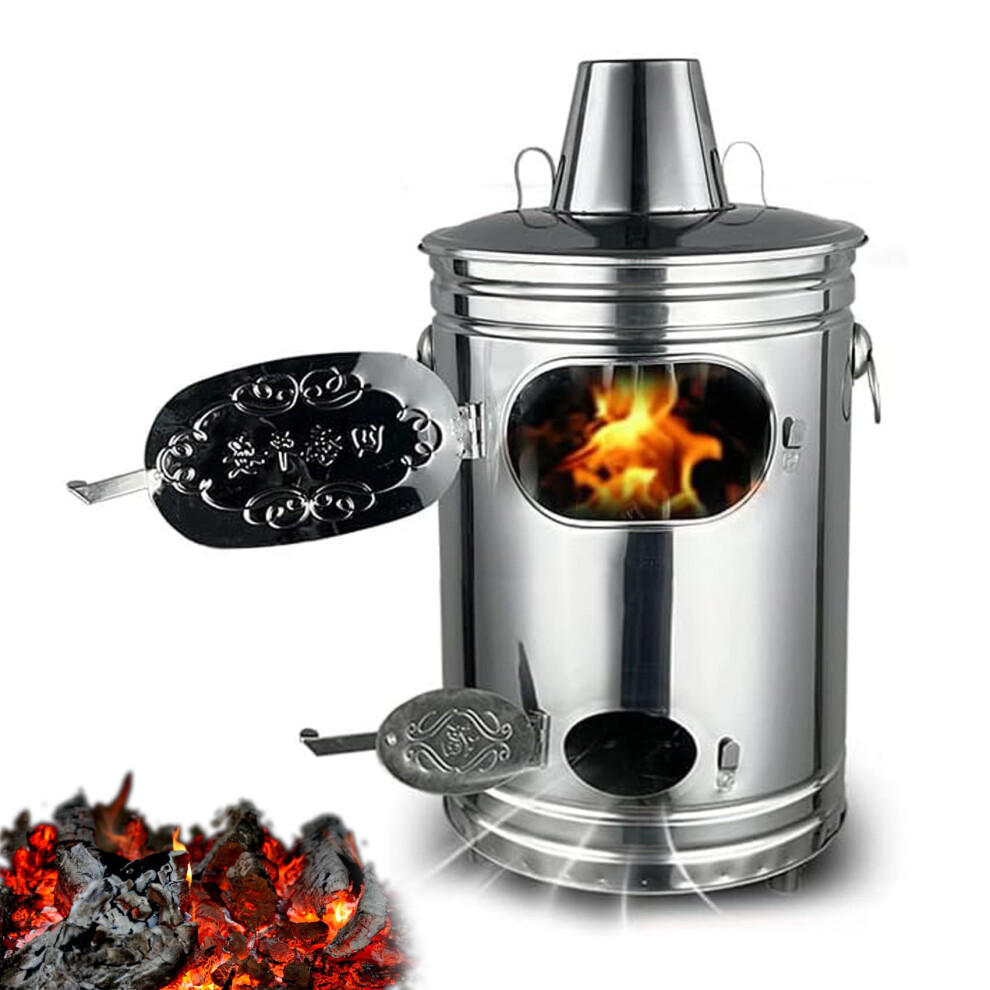 Stainless Steel Fire Pit For Camping Garden Wood-Burning Incinerator Portable Outdoor Barrel 28x32cm