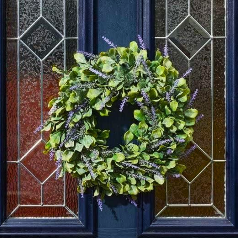 Hanging Garden Wreath Artificial Leaf Lavender Decor Outdoor Faux Floral Round