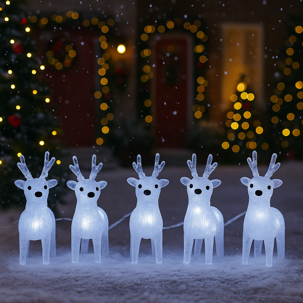 Christmas LED Reindeer Lights 5pc Light Up Xmas Decor Stag Acrylic Xmas Home