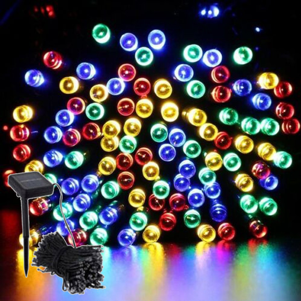 100 Multi Colour Solar LED Outdoor Fairy Lights Christmas Garden String 4.95m