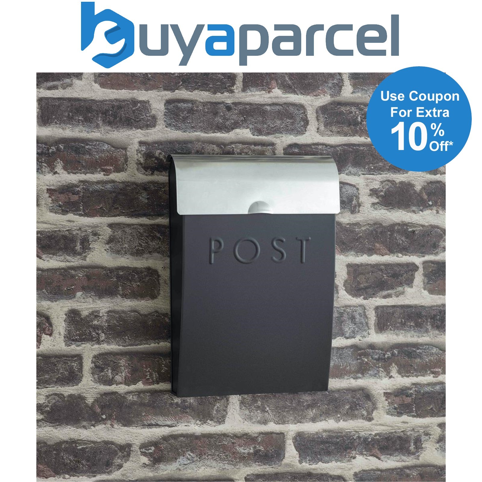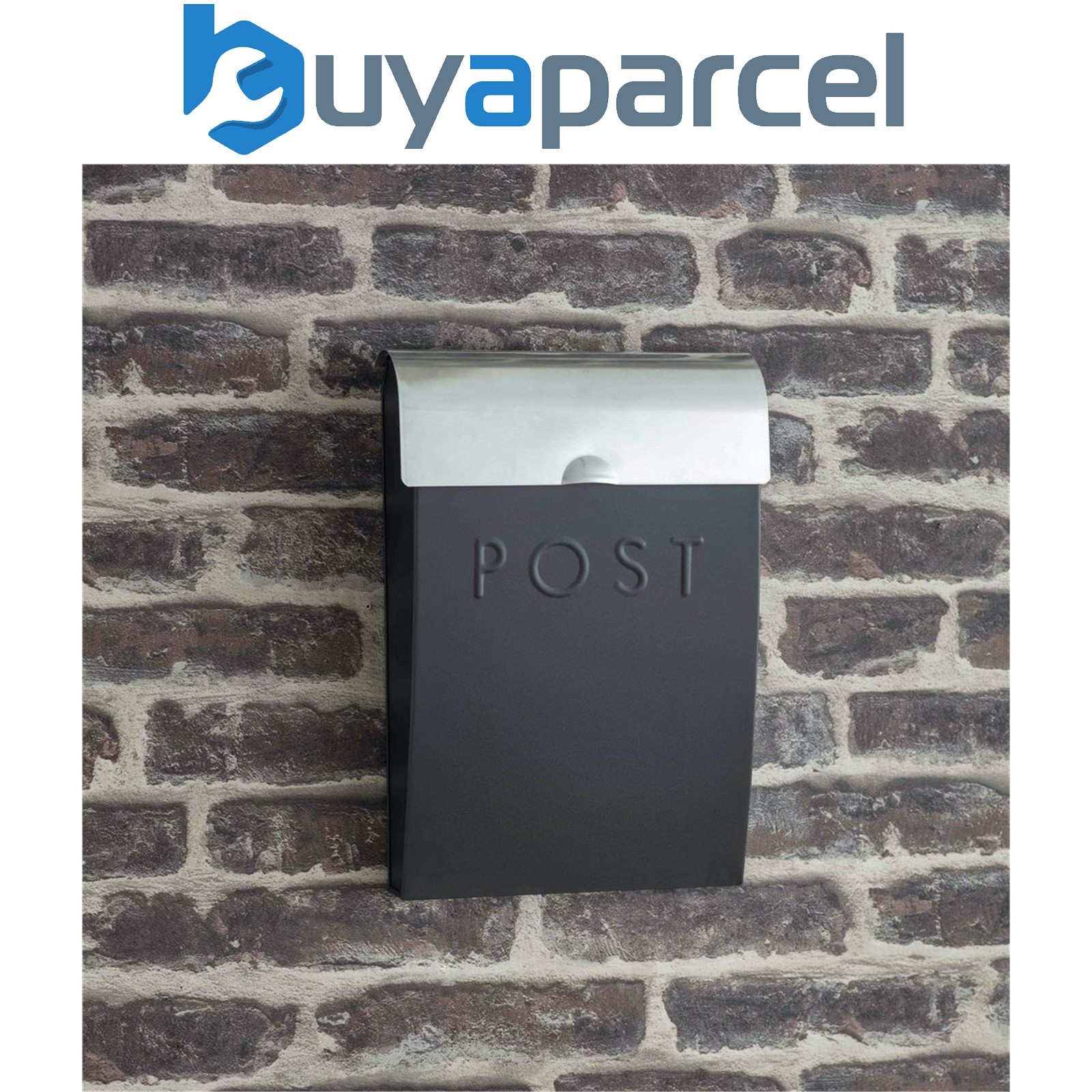 Garden Trading Carbon Grey & Steel Letter Post Mail Box With Lock Wall Mounted