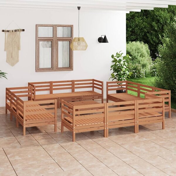 vidaXL Solid Pinewood Garden Lounge Set 13 Piece Honey Brown Outdoor Seating