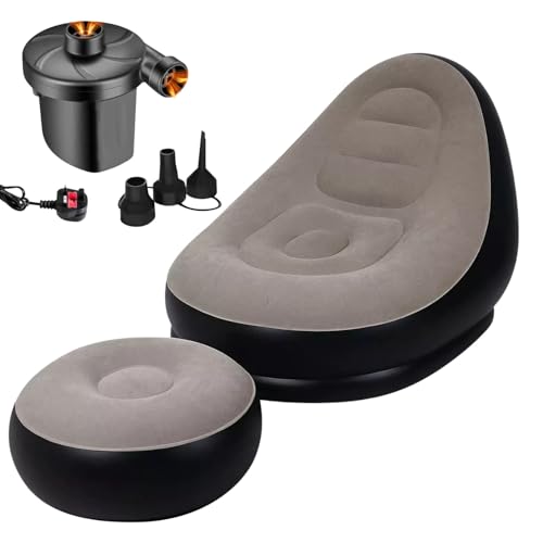 Garden Mile Inflatable Lounger Chair & Ottoman Set – Deluxe Air Sofa with Foot Stool & Pump, Blow Up Chair for Adults & Kids, Ideal for Gaming, Camping, Reading & Home Use