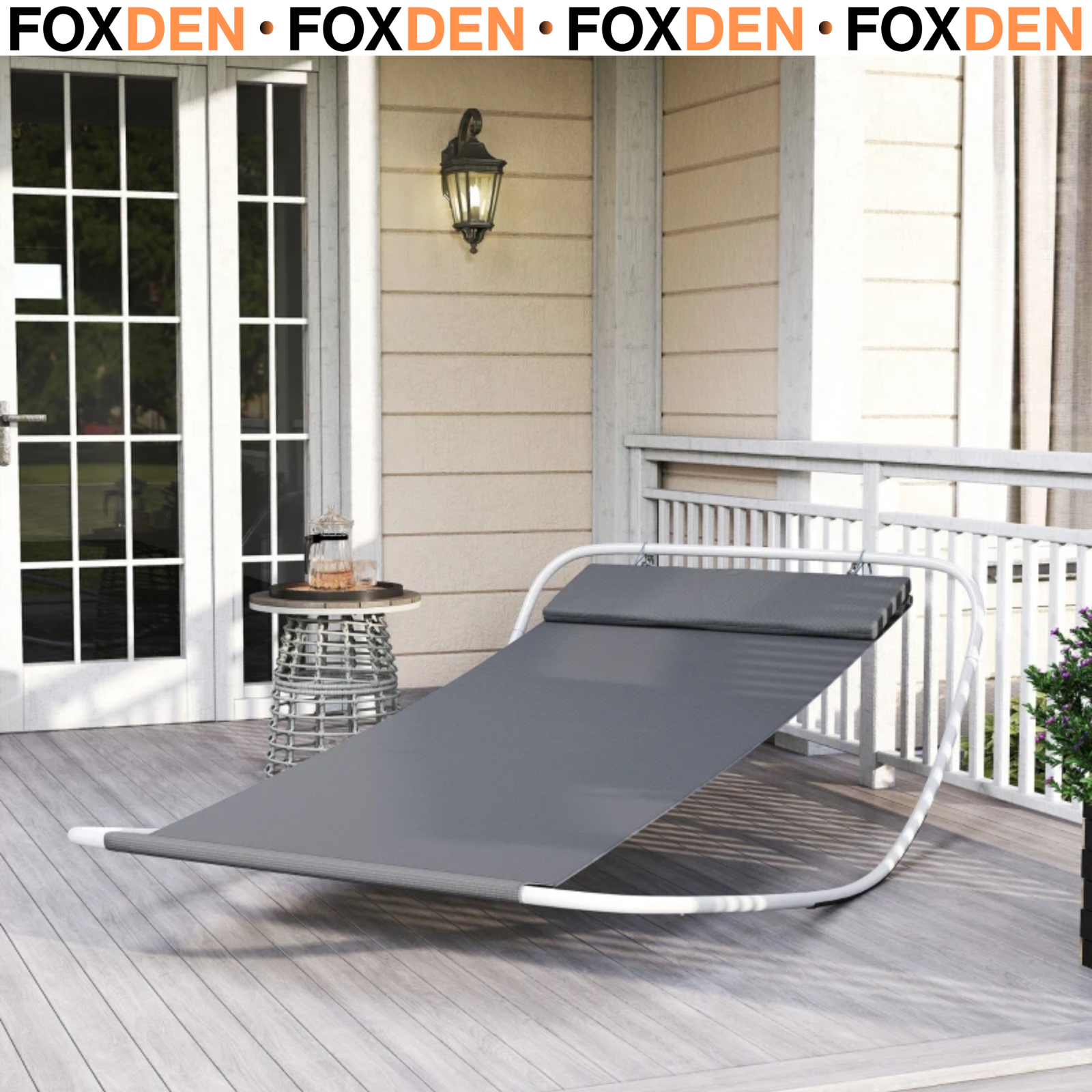 Double Rocking Bed Hammock – Outdoor Garden Sun Lounger for Relaxation Grey