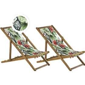 Beliani Set of 2 Garden Loungers Light Acacia Wood ANZIO Toucan Pattern