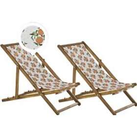 Beliani Set of 2 Garden Loungers Light Acacia Wood Orange Pattern ANZIO