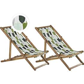 Beliani Set of 2 Garden Loungers Light Acacia Wood Leaf Pattern Green ANZIO