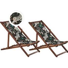 Beliani Set of 2 Garden Loungers Dark Acacia Wood Animal Pattern ANZIO